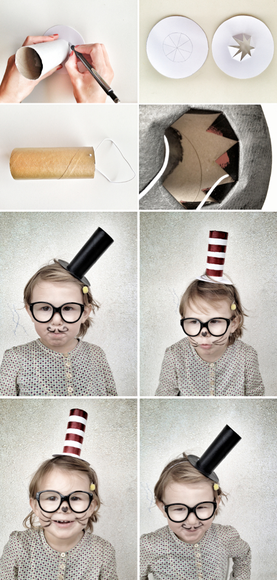 Cat in the Hat headpieces made from toilet paper rolls too!